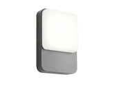 Venkovní nástěnné svítidlo vybavené LED SMD, konstrukce z hliníkové slitiny, elektrostaticky malovaná v tmavě šedé barvě a opálový polykarbonátový difuzor.