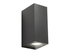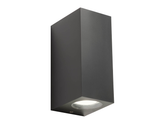 Nástěnné exteriérové svítidlo, s přímým/nepřímým rozptylem světla. Konstrukce ABS v tmavě šedé barvě, průhledné polykarbonátové difuzory.