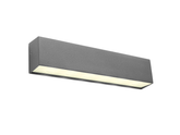 Nástěnné exteriérové svítidlo vybavené SMD LED diodami, asymetrický rozptyl světla. Kryt z litého hliníku, lakovaný v tmavě šedé barvě, bílý skleněný difuzor.