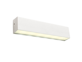 Nástěnné exteriérové svítidlo vybavené SMD LED diodami, asymetrický rozptyl světla. Kryt z litého hliníku, lakovaný pískově bílou barvou, bílý skleněný difuzor.