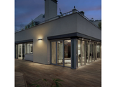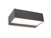 Venkovní nástěnné svítidlo s přímým/nepřímým svícením, obsahuje SMD LED-ky. Hliníková slitina tmavě šedé barvy, opálový polykarbonátový difuzor.