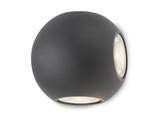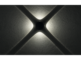 Venkovní nástěnné svítidlo vybavené POWER LED, konstrukce z hliníkové slitiny elektrostaticky malovaná v tmavě šedé barvě, disponuje 4 čočkami které vydávají 4 paprsky pod úhlem 92°. Integrovaný napáječ.