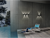 Nástěnné exteriérové svítidlo vybavené LED COB diodami, hliníková konstrukce lakovaná v matné černé barvě, průhledný skenený difuzor.