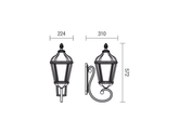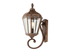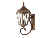 Venkovní nástěnné svítidlo, hliníková slitina antické hnědé barvy a černé patiny a zastřiženého čirého skla.