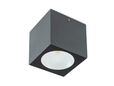 Stropní exteriérové svítidlo vybavené LED diodami COB, hliníková konstrukce lakovaná v tmavě šedé barvě, průhledný difuzor z tvrzeného skla.