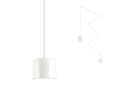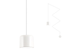 Závěsné interiérové svítidlo, struktura a difuzor z kovu lakované v matné bílé barvě, reflektor z bílého materiálu PMMA. Dodáváno s 5-metrovým bílým textilním kabelem a příslušenstvím pro montáž na stěnu nebo strop.