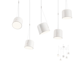 Závěsná interiérová svítilna, struktura a nastavitelný difuzor z kovu lakovaný v matné bílé barvě, reflektor z bílého PMMA materiálu. Dodáváno s 3metrovým bílým textilním kabelem a příslušenstvím pro montáž na strop.