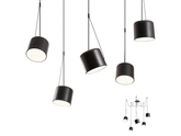 Závěsná interiérová svítilna, struktura a nastavitelný difuzor z kovu lakovaný v matné černé barvě, reflektor z bílého PMMA materiálu. Dodáváno s 3metrovým černým textilním kabelem a příslušenstvím pro montáž na strop.