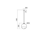 Závěsné interiérové svítidlo, chromová kovová struktura, skleněný difuzor v kouřově šedé barvě.