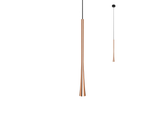 Závěsné svítidlo do interiéru vybavené SMD LED, pískově černou hliníkovou strukturou, difuzorem z hliníku, povrchově upraveno v růžové zlaté.
