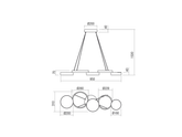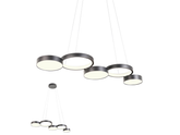 Závěsné svítidlo do interiéru vybavené SMD LED diodami, konstrukce z hliníku a kovu lakovaná pískově černou barvou, difuzéry ze saténového bílého akrylu.