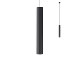 Závěsné svítidlo pro interiér, kovová a extrudovaná hliníková konstrukce, elektrostaticky lakovaná matnou černou barvou.