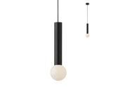 Závěsné interiérové svítidlo, kovová struktura v černé barvě, černý kovový difuzor.