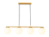 Závěsné interiérové svítidlo, kovová konstrukce lakovaná matnou zlatou, opálově bílé foukané sklo difuzor.