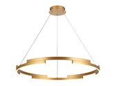Závěsné interiérové svítidlo, vybavené SMD LED, konstrukce z hliníku a kovu lakovaná matnou zlatou, difuzor z bílého PVC.