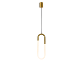 Závěsné interiérové svítidlo vybavené SMD LED diodami, kovová galvanizovaná konstrukce v mosazné barvě, opálový akrylátový difuzor.
