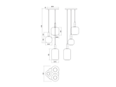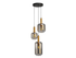 Závěsné svítidlo do interiéru, kovová konstrukce lakovaná pískově černou barvou s matnými zlatými detaily, difuzory z foukaného skla.