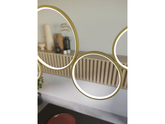 Závěsné interiérové svítidlo, vybavené SMD LED diodami, s možností volby teploty barvy světla, kovová a hliníková konstrukce v matné zlaté barvě, bílý PVC difuzor.