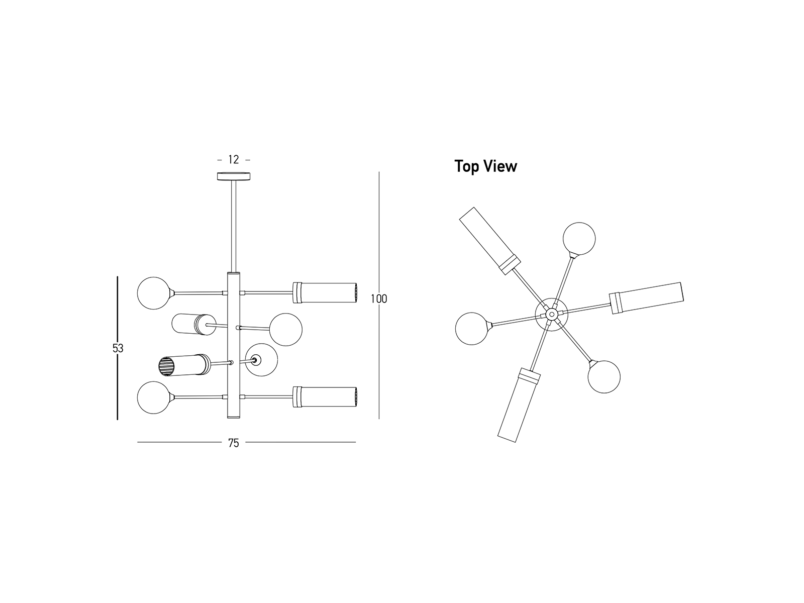 Domů / Kategorie vnitřní osvětlení / Závěsné svítidlo černá/mosaz, 4xG9, 4xE27 ø75cm