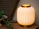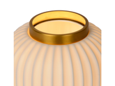 Svítidlo vyrobené z kvalitního porcelánu, zakončené kovovými hranami. To dává stolní lampě Gosse její okouzlující vzhled. Válcový design má průměr 19,5 centimetru a měří téměř 24 centimetrů na výšku. Tato kompaktní velikost dělá z Gosse všestranný design osvětlení. Přináší retro nádech do každého koutu vašeho domova. Světelný zdroj uvnitř porcelánové kapsle šíří své světlo nahoru a skrz plášť. Tato tlumená záře okamžitě nastavuje náladu. Kompatibilní s LED žárovkou.