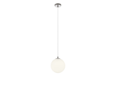 Interiérová závěsná svítilna, kovová konstrukce v provedení satén-nikl. Difuzor je z foukaného opálového skla.