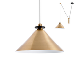 Závěsné interiérové svítidlo s nastavitelnou výškou, hliníková konstrukce - broušený bronz s černými detaily, difuzor z hliníku v barvě broušeného bronzu zvenčí a matné bílé barvě zevnitř.