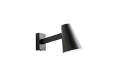 Nastavitelné nástěnné interiérové svítidlo, kovová struktura lakovaná v matné černé barvě, kovový difuzor lakovaný v matné černé zvenčí a matné bílé barvě zevnitř.