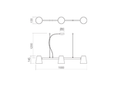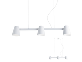 Závěsné interiérové svítidlo s nastavitelnými difuzory, kovová struktura a difuzory v matné bílé barvě.