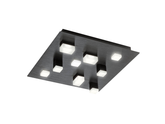 Stropní interiérová lampa, vybavená LED diodami SMD, kovová a leštěná hliníková struktura eloxovaná v černé barvě, saténové akrylové difuzory.