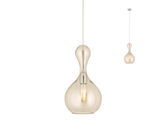 Interiérová závěsná svítilna s chromovanou strukturou kovu. Foukané sklo v barvě champagne (šampaňské).