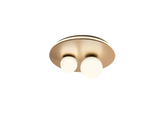 Stropní interiérové svítidlo vybavené SMD LED diodami, konstrukce z hliníku a kovu elektrostaticky lakovaná v bledě zlaté s detaily z broušeného bledězlatého hliníku, stínítko z foukaného skla z opálu s kruhovým difuzorem z opálového bílého silikonu.