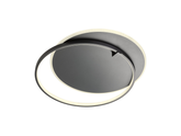 Interiérové stropní svítidlo vybavené SMD LED diodami, kovovou a hliníkovou konstrukcí v pískové černé barvě, saténovým akrylátovým a opálovým silikonovým difuzorem.