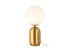 Interiérová stolní lampa, matná pozlacená kovová konstrukce, difuzor z foukaného opálového skla.