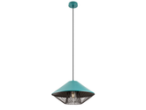 Interiérové visící svítidlo, kovová konstrukce elektrostaticky malovaná v matné černé barvě, hliníkový difuzor lakovaný v matně tmavé zelené barvě na vnější straně a v pískové černé barvě na vnitřní straně, černá dekorační mřížka.