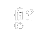 Stolní interiérová lampa, struktura kovu lakovaná matnou černou a přírodním bukovým dřevem, kovový difuzor elektrostaticky lakovaný matnou černou zvenčí a bílou zevnitř.