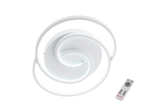 Interiérové stropní svítidlo vybavené SMD LED diodami, kovová a hliníková konstrukce lakovaná v pískové bílé barvě, opálově bílé silikonové difuzory. Dodáváno s dálkovým ovladačem (2 AAA baterie jsou součástí balení) s více funkcemi: ON/OFF, 3 provozní programy, regulace intenzity světla, změna teploty barev od teplé bílé po studenou bílou, časovač a režim nočního osvětlení.