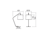 Interiérová stolní lampa, kovová konstrukce elektrostaticky lakovaná v pískové černé barvě, stínítko šedé barvy z textilu na PVC základně.