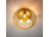 Interiérové stropní svítidlo, matná zlatá kovová konstrukce, kovový difuzor s matným zlatým povrchem.