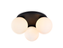 Stropní interiérové svítidlo, kovová konstrukce lakovaná v pískově černé, difuzory z foukaného skla opálově bílé.