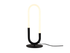 Stolní lampa vybavená SMD LED diodami, kovová konstrukce lakovaná pískově černou barvou, průhledný difuzor z foukaného skla.