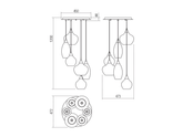Závěsné interiérové svítidlo, chromovaná kovová struktura, skleněné difuzory v kouřové barvě.