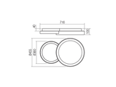 Interiérové stropní svítidlo, vybavené SMD LED diodami, s možností volby teploty barvy světla, kovová konstrukce elektrostaticky lakovaná v pískově bílé barvě, opálově bílé akrylové difuzory.