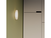 Interiérové nástěnné/stropní svítidlo, bílá kovová konstrukce, difuzor z bílého foukaného opálového skla.