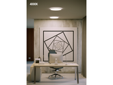 Interiérová stropní lampa vybavená SMD LED diodami teplá bílá a studená bílá, s přímým/nepřímým vyzařováním světla. Změna teploty barvy světla z teplé bílé na studenou bílou pomocí vypínače. Matný černý polykarbonát a struktura ABS, opálový polykarbonátový difuzor.