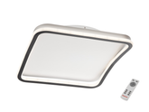 Stropní svítidlo do interiéru vybaveno LED diodami SMD, kovová konstrukce natřená matnou bílou barvou, římsa z hliníkového profilu natřená matnou černou barvou s opálově bílými silikonovými difuzory. Dodává se s dálkovým ovládáním (se 2 bateriemi AAA, které jsou součástí balení) s těmito funkcemi: zapnutí/vypnutí, 3 provozní programy, stmívání, nastavení teploty barvy světla od teplé bílé po studenou bílou, časovač a režim nočního světla.